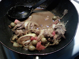 saute onion, garlic, ginger, carrot, and chicken in sesame and hot chili oil until browned.